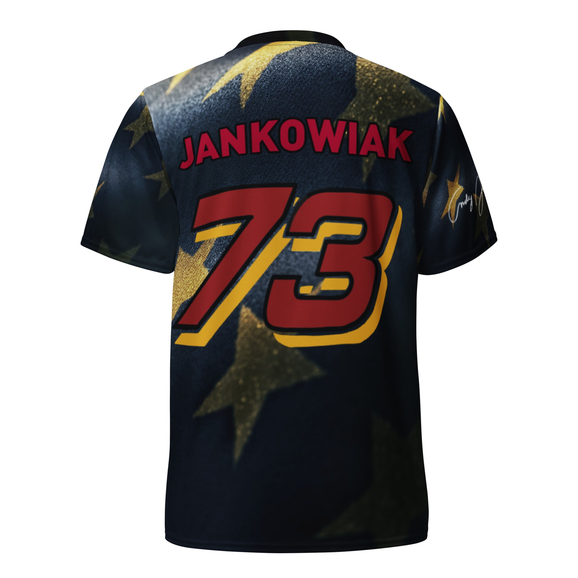 Looking for the perfect sports jersey? We have you covered—made of 100% recycled polyester fabric, this shirt is breathable, moisture-wicking, and has a double-layered v-neck collar that creates a premium look.