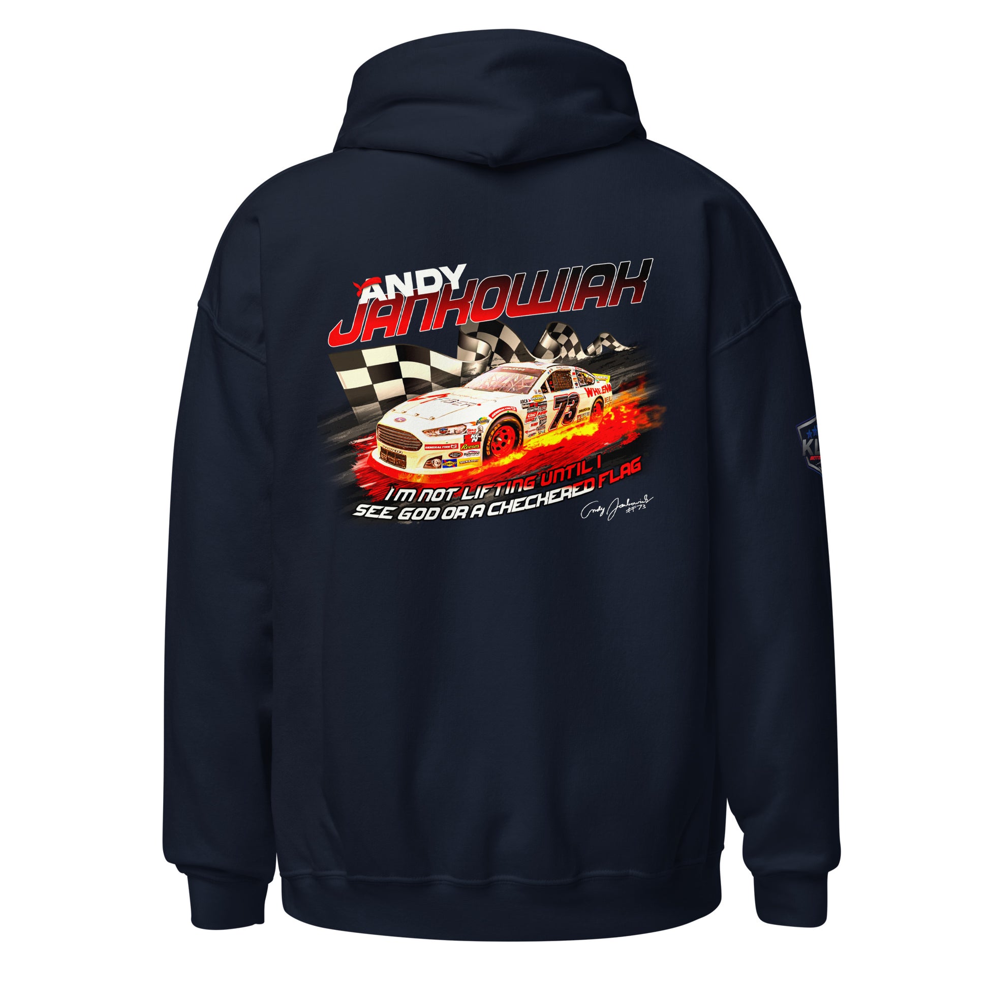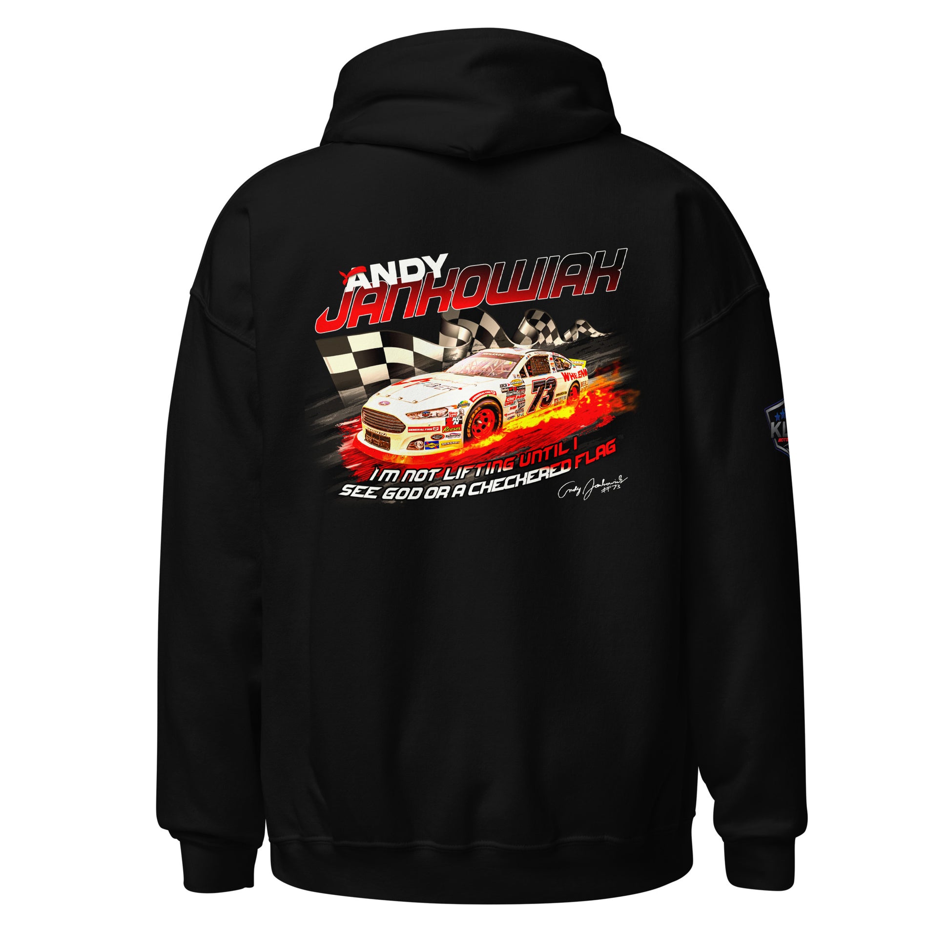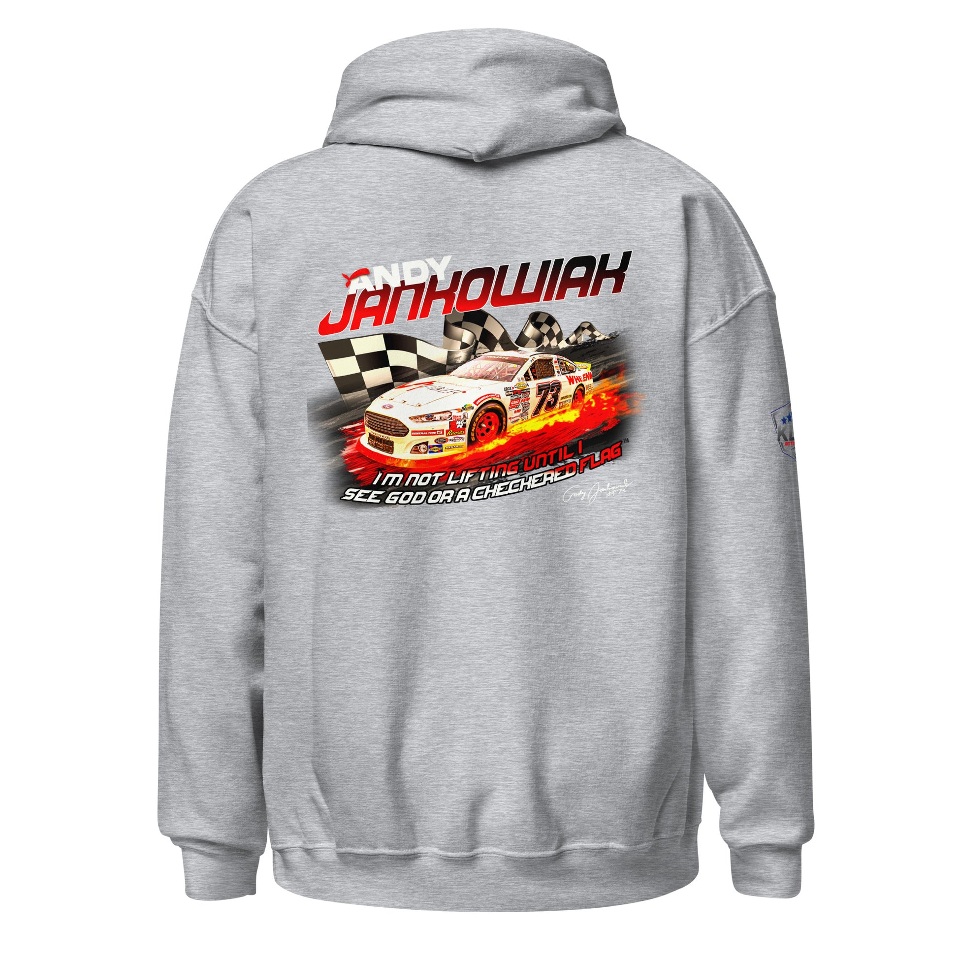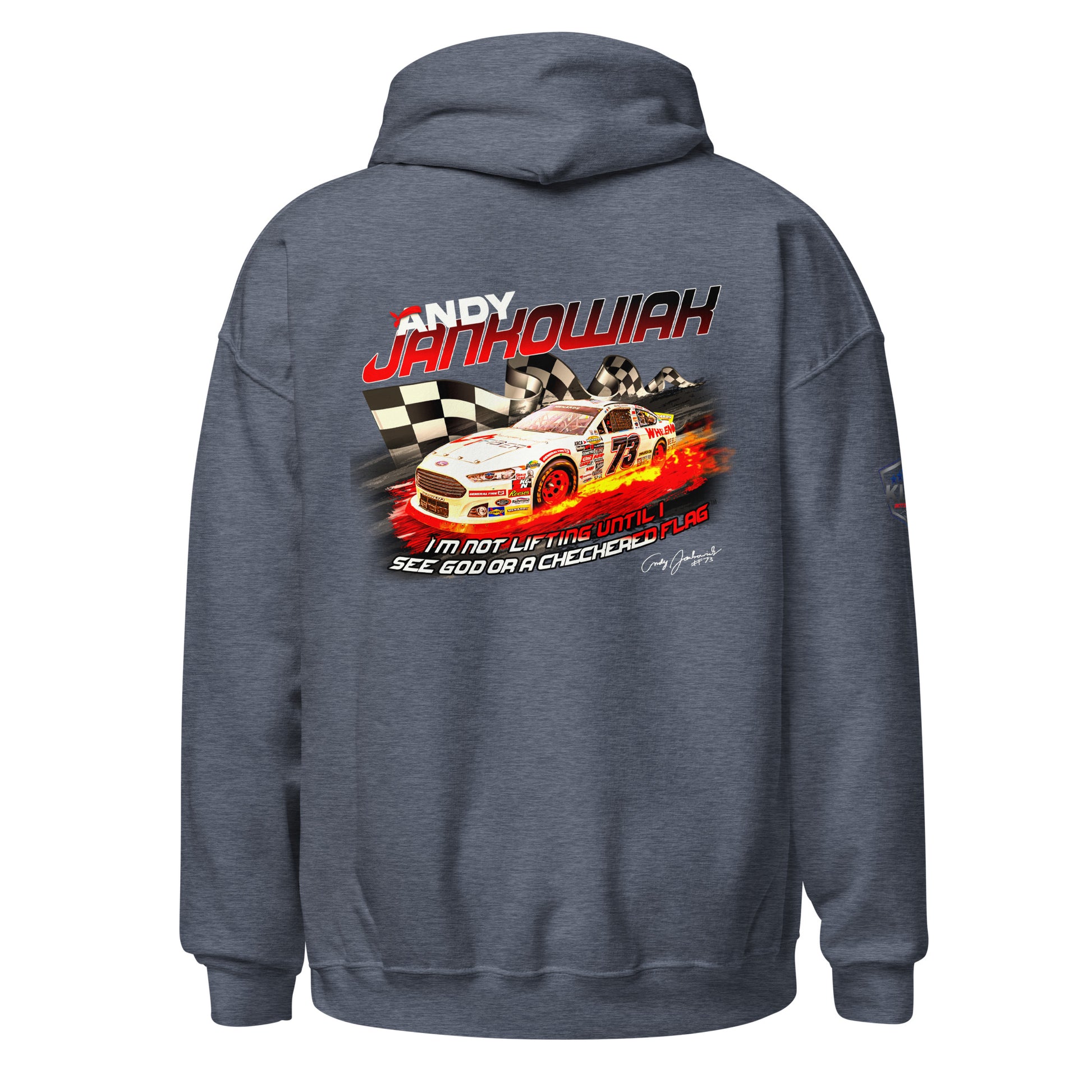 Featuring Andy's iconic quote during the Daytona 2024 race. "I'm not lifting until I see God or the checkered flag"™. Everyone needs a cozy go-to hoodie to curl up in, so go for one that's soft, smooth, and stylish. It's the perfect choice for cooler evenings!