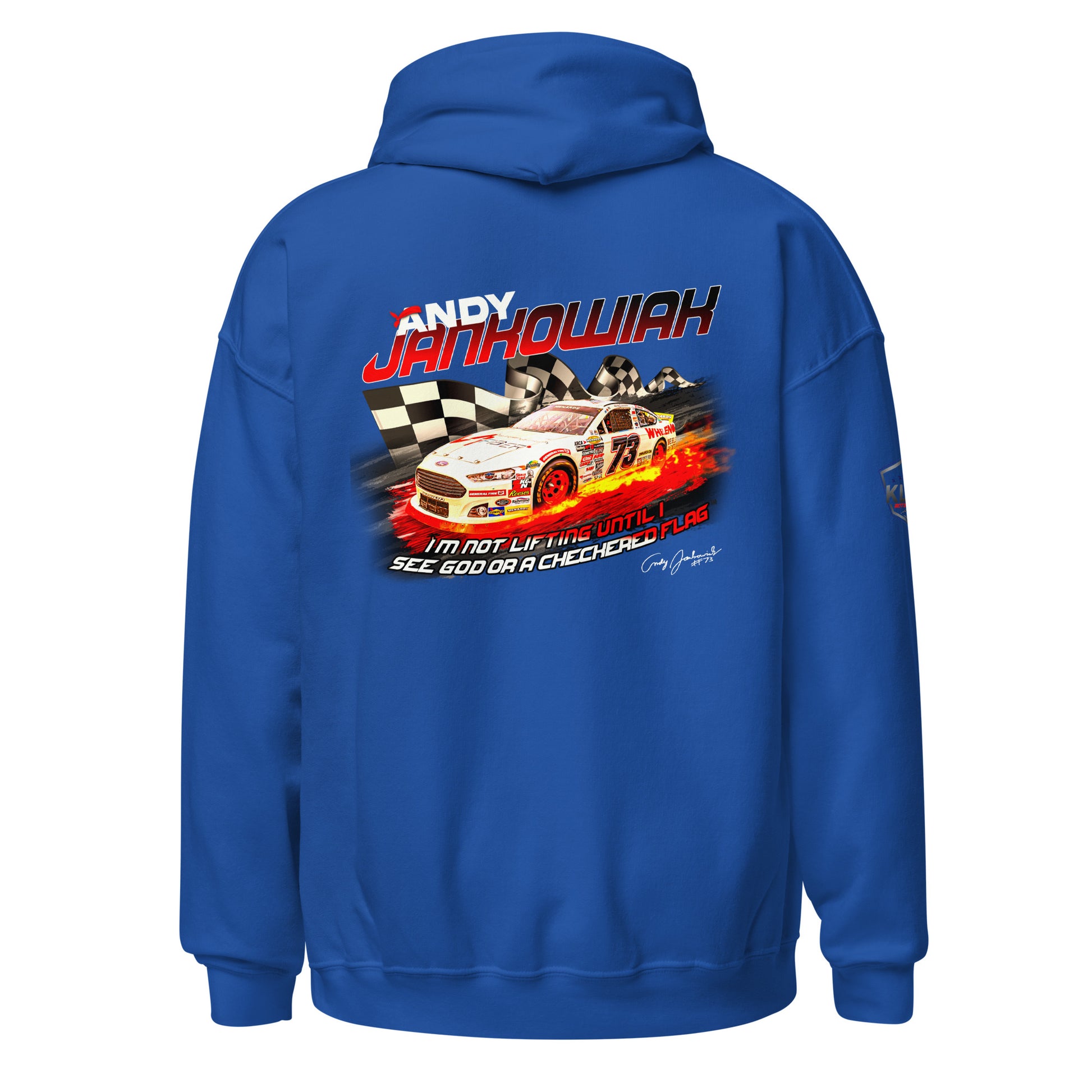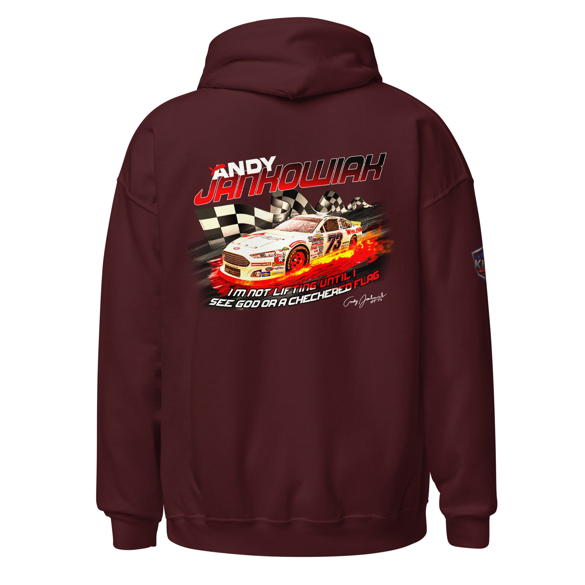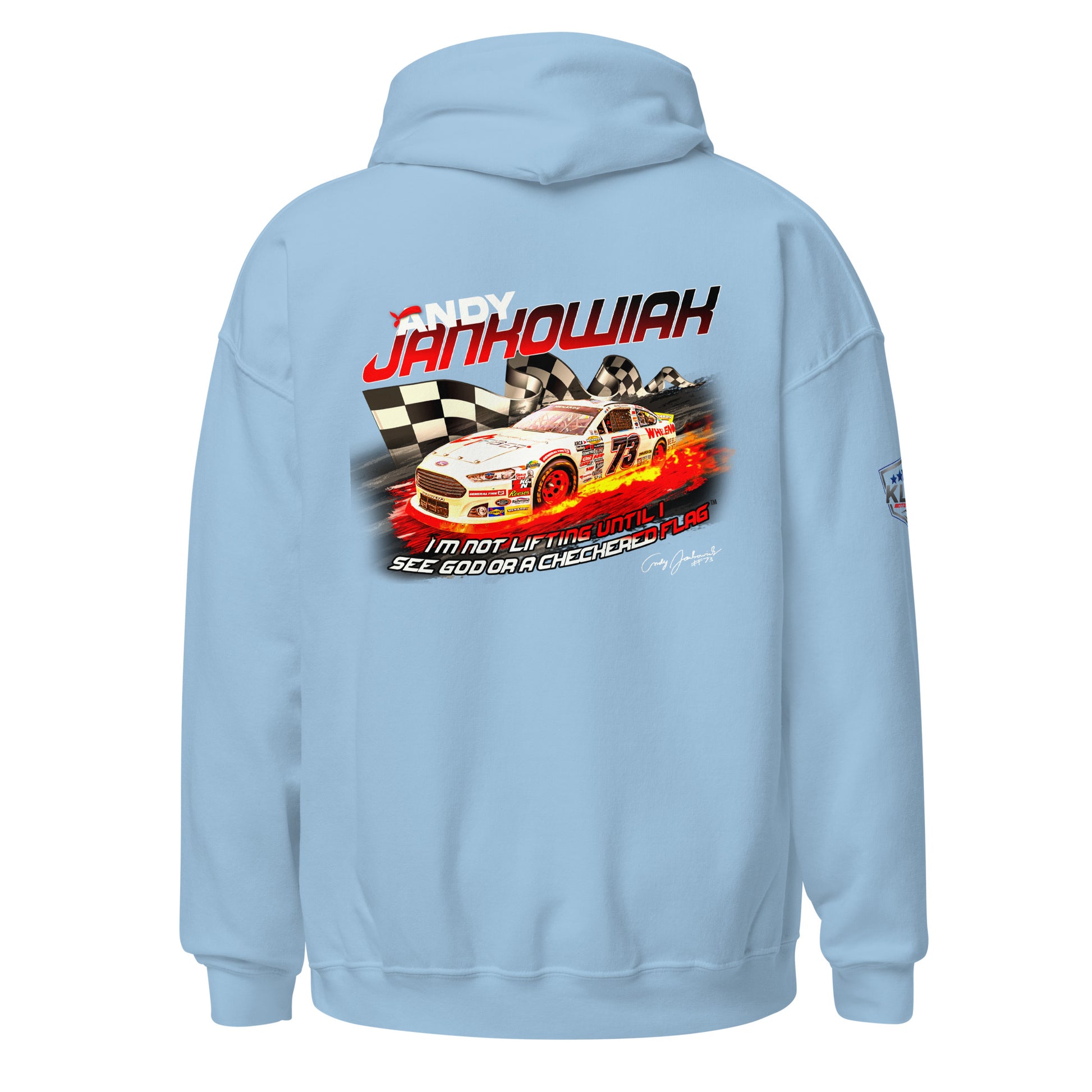 Featuring Andy's iconic quote during the Daytona 2024 race. "I'm not lifting until I see God or the checkered flag"™. Everyone needs a cozy go-to hoodie to curl up in, so go for one that's soft, smooth, and stylish. It's the perfect choice for cooler evenings!