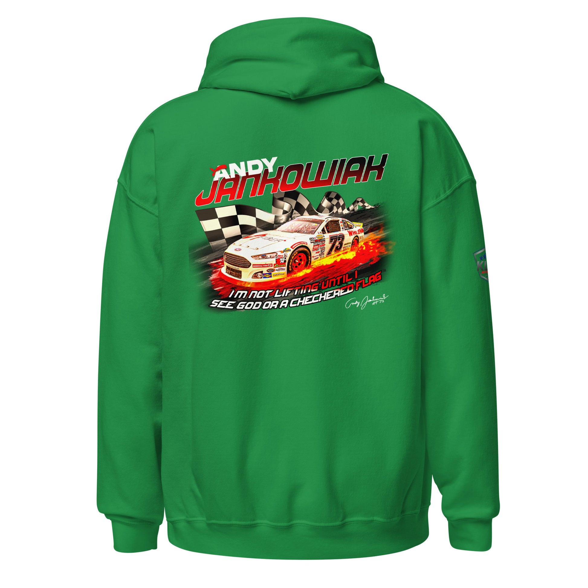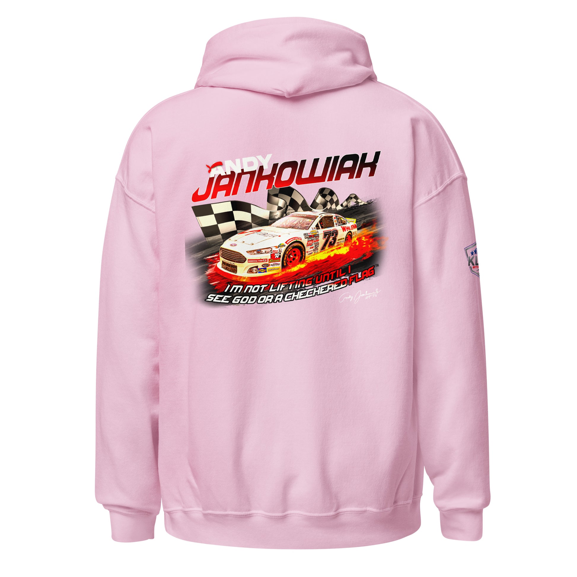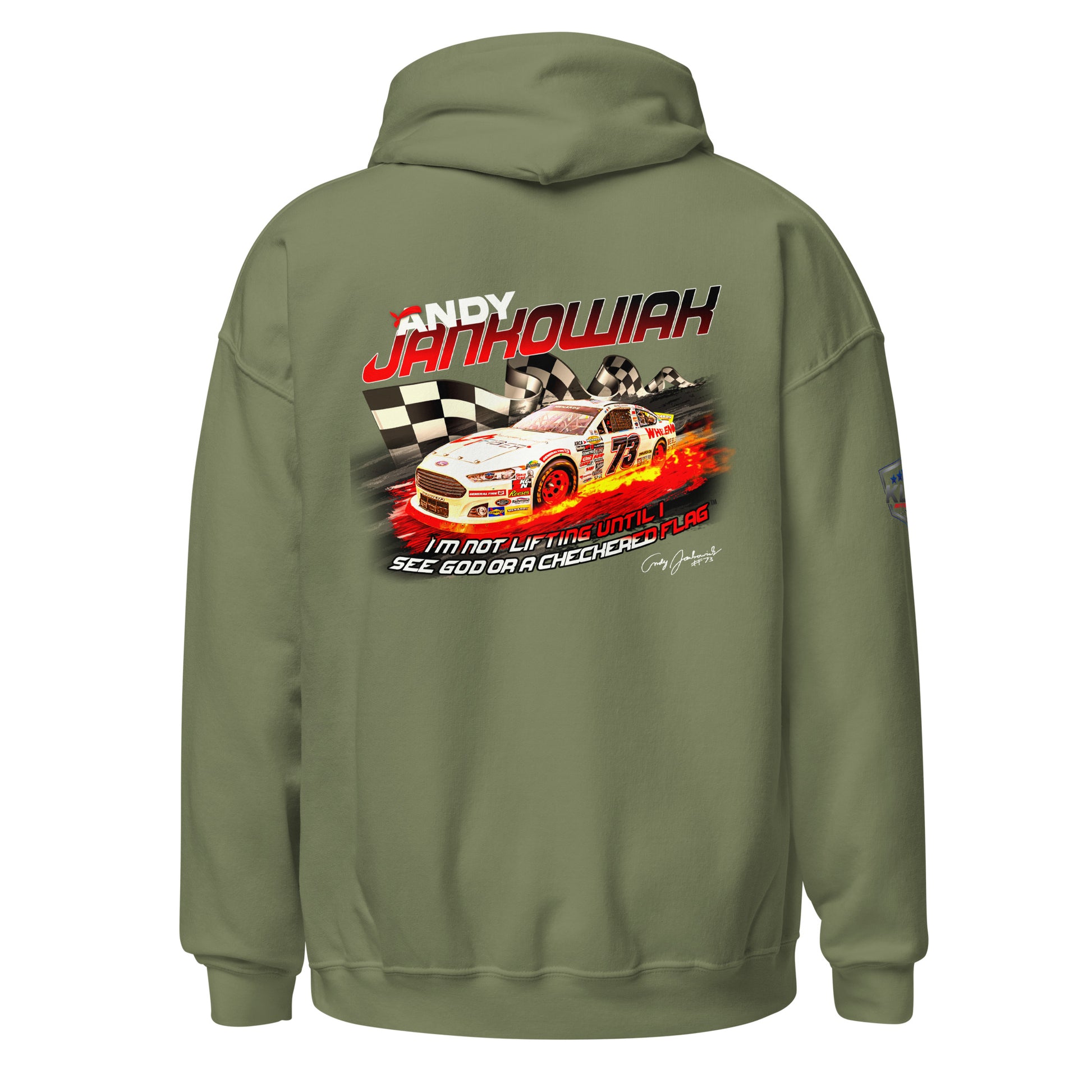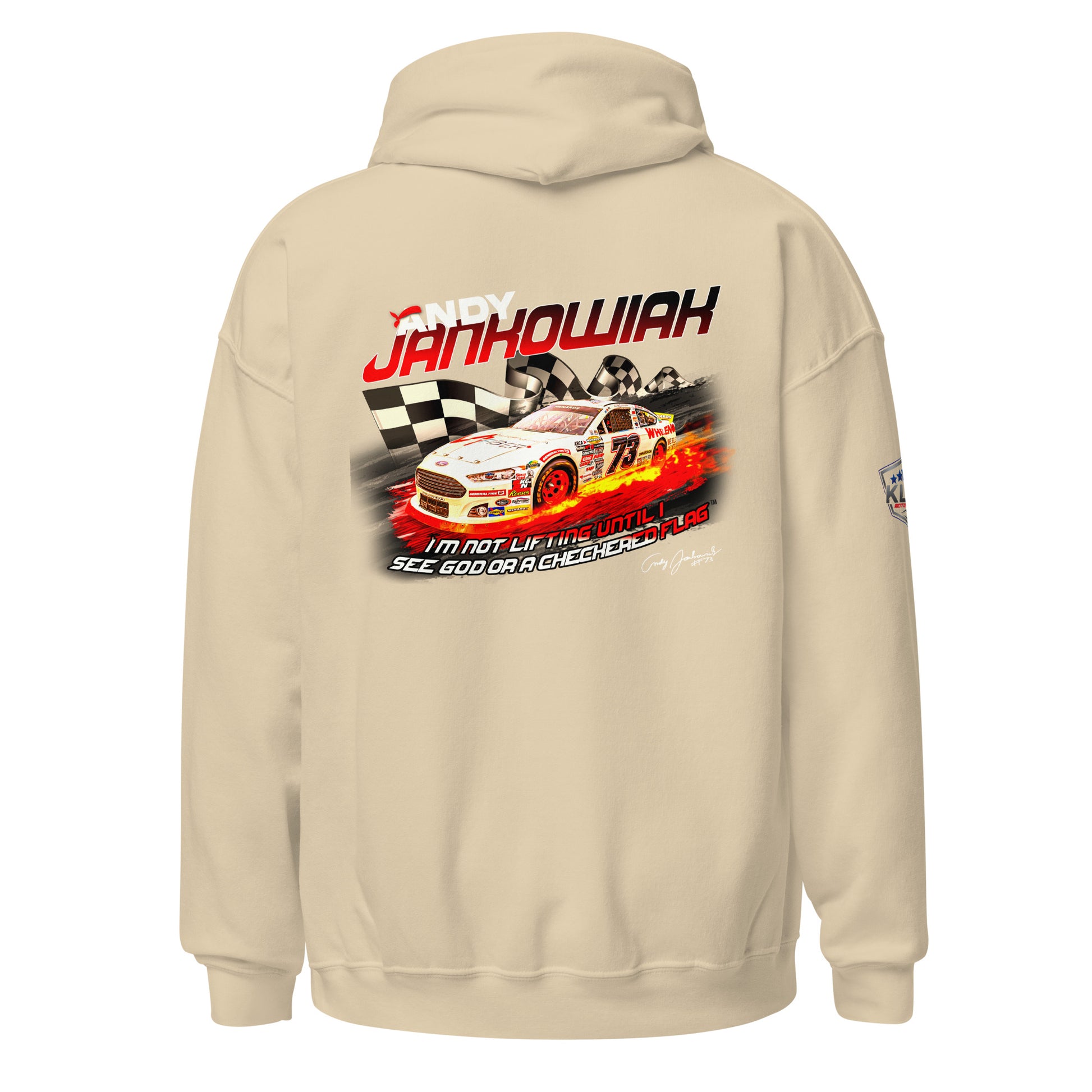 Featuring Andy's iconic quote during the Daytona 2024 race. "I'm not lifting until I see God or the checkered flag"™. Everyone needs a cozy go-to hoodie to curl up in, so go for one that's soft, smooth, and stylish. It's the perfect choice for cooler evenings!